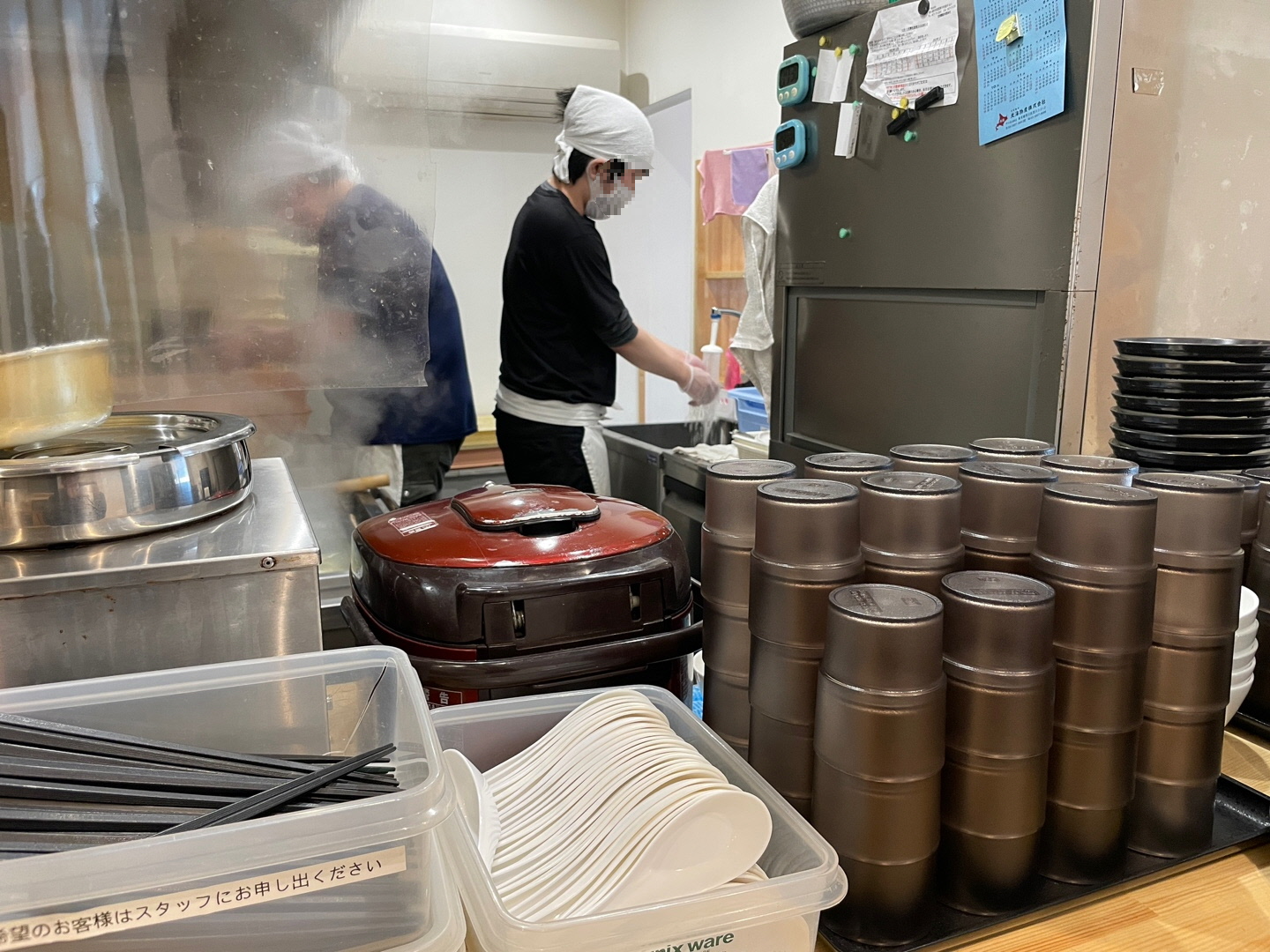 열심히 우동을 조리하시는 종업원들을 만날 수 있었습니다.