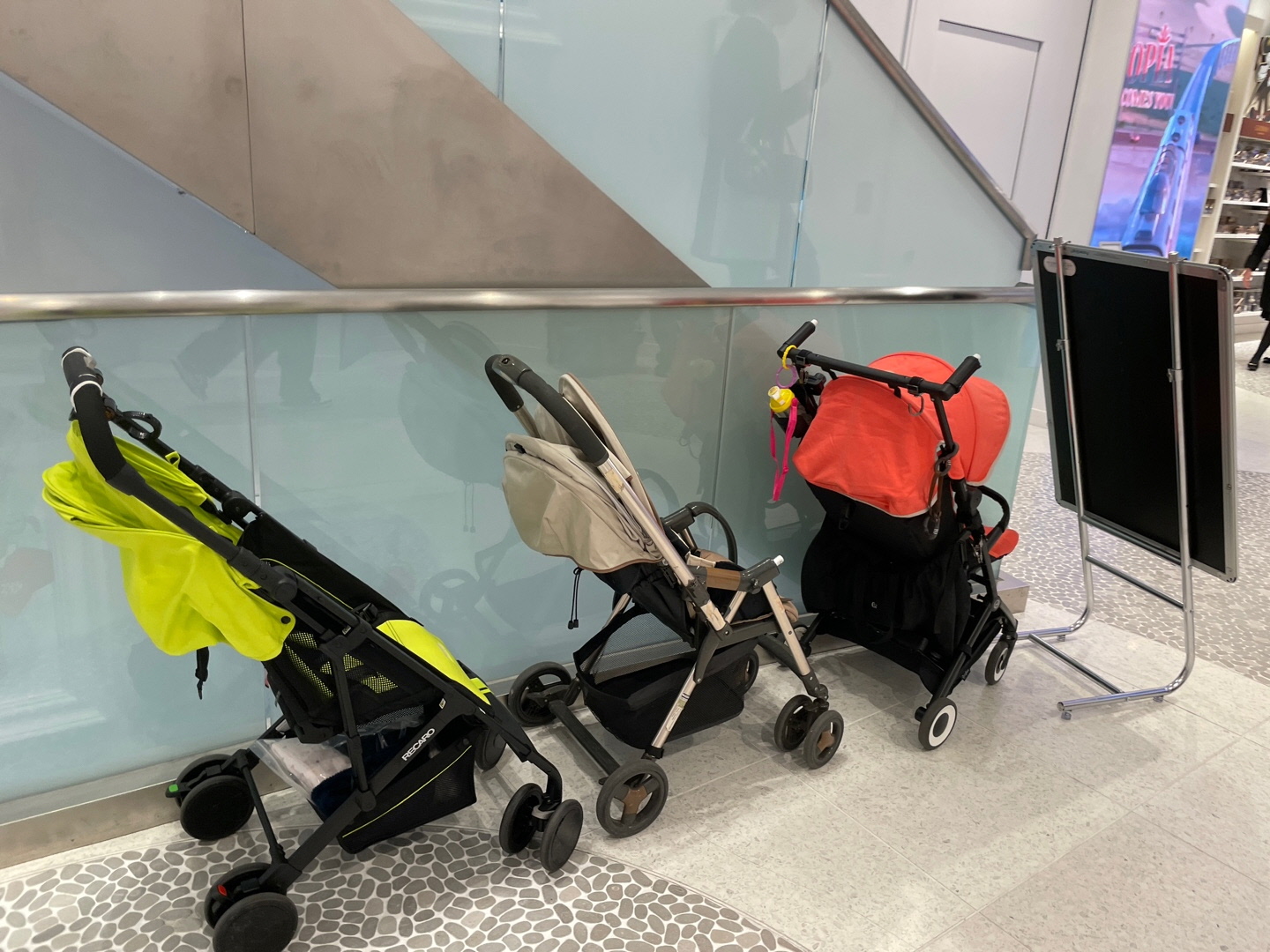 중간에 줄 맞춰 주차된 유모차도 만날 수 있었습니다.
