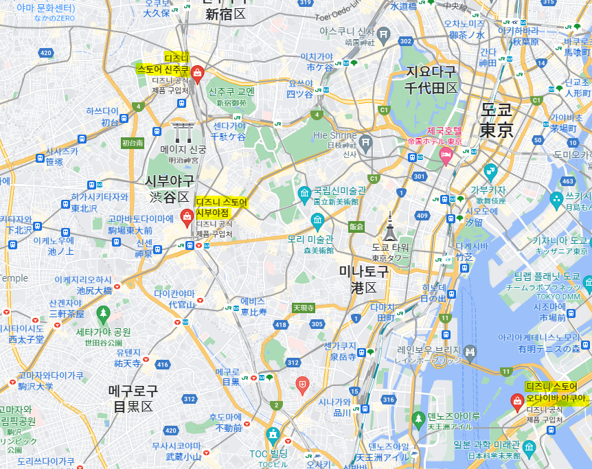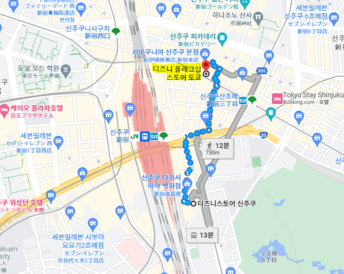 디즈니스토어 신주쿠에서 약 12분 정도 걸으면 나오는 디즈니 플래그십 스토어 도쿄입니다.