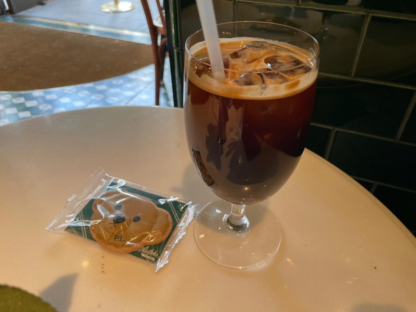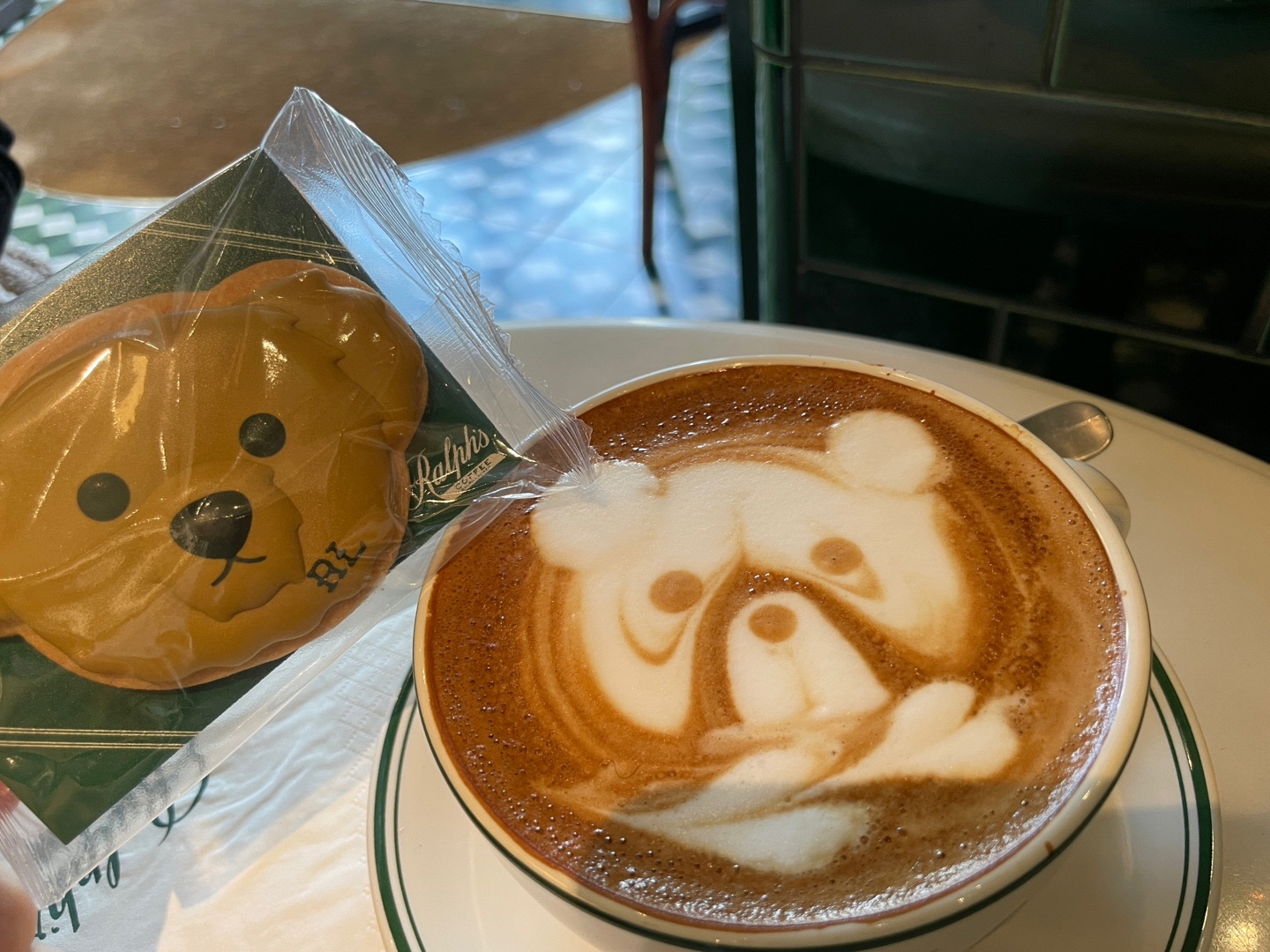 랄프로렌의 시그니처 곰돌이 모양의 쿠키와 라떼를 만날 수 있어요.